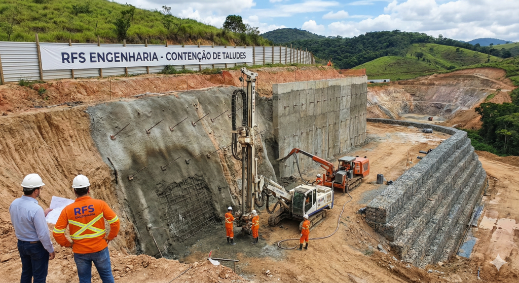 Seja em obras de infraestrutura, edifícios residenciais ou áreas industriais, a estabilidade do solo é o fator mais crítico para a segurança. A RFS Engenharia é referência em soluções geotécnicas, oferecendo serviços de contenção de taludes que unem alta tecnologia, conformidade com normas rigorosas (ABNT) e eficiência executiva.