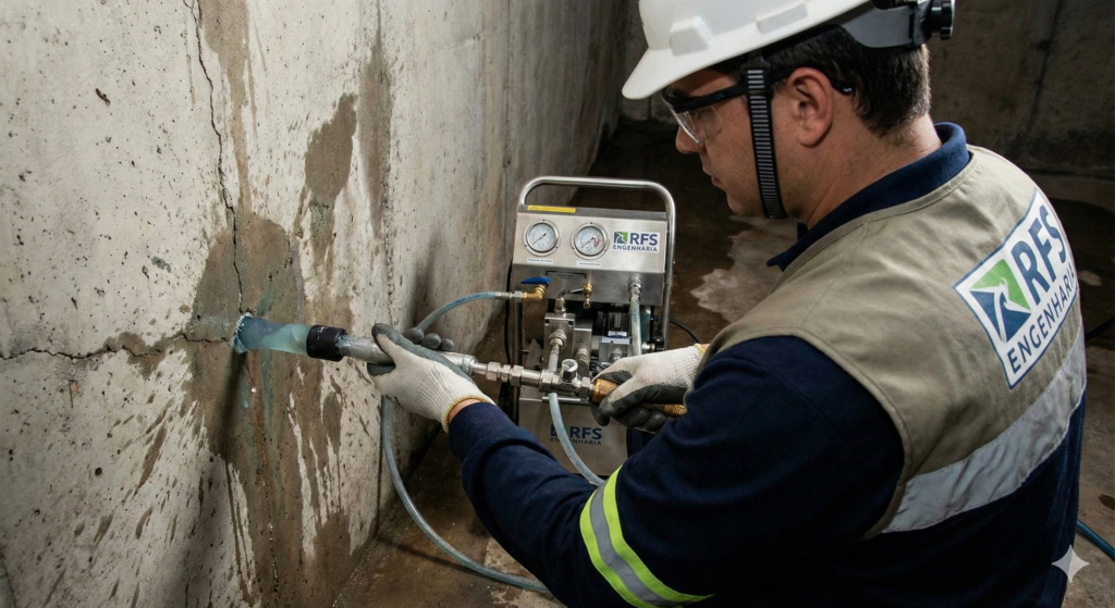 O processo consiste na injeção de uma resina hidrofílica (Gel Acrílico) através de perfurações estratégicas na estrutura. Este material possui baixíssima viscosidade (quase igual à da água), o que permite que ele penetre nas menores capilaridades e fissuras do concreto.