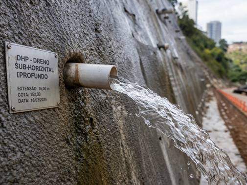 Projeto de contenção robusto + drenagem subdimensionada = falha inevitável.